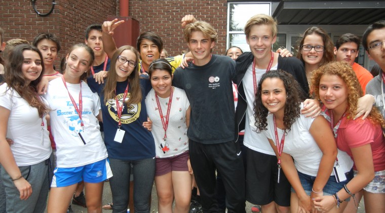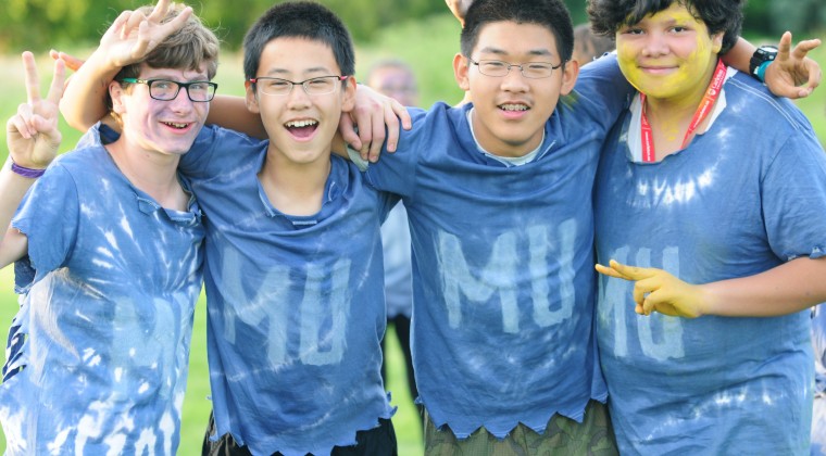 세계 각지에서 온 학생들이 함께 모여 재미있는 게임을 즐기며 서로 경쟁합니다.